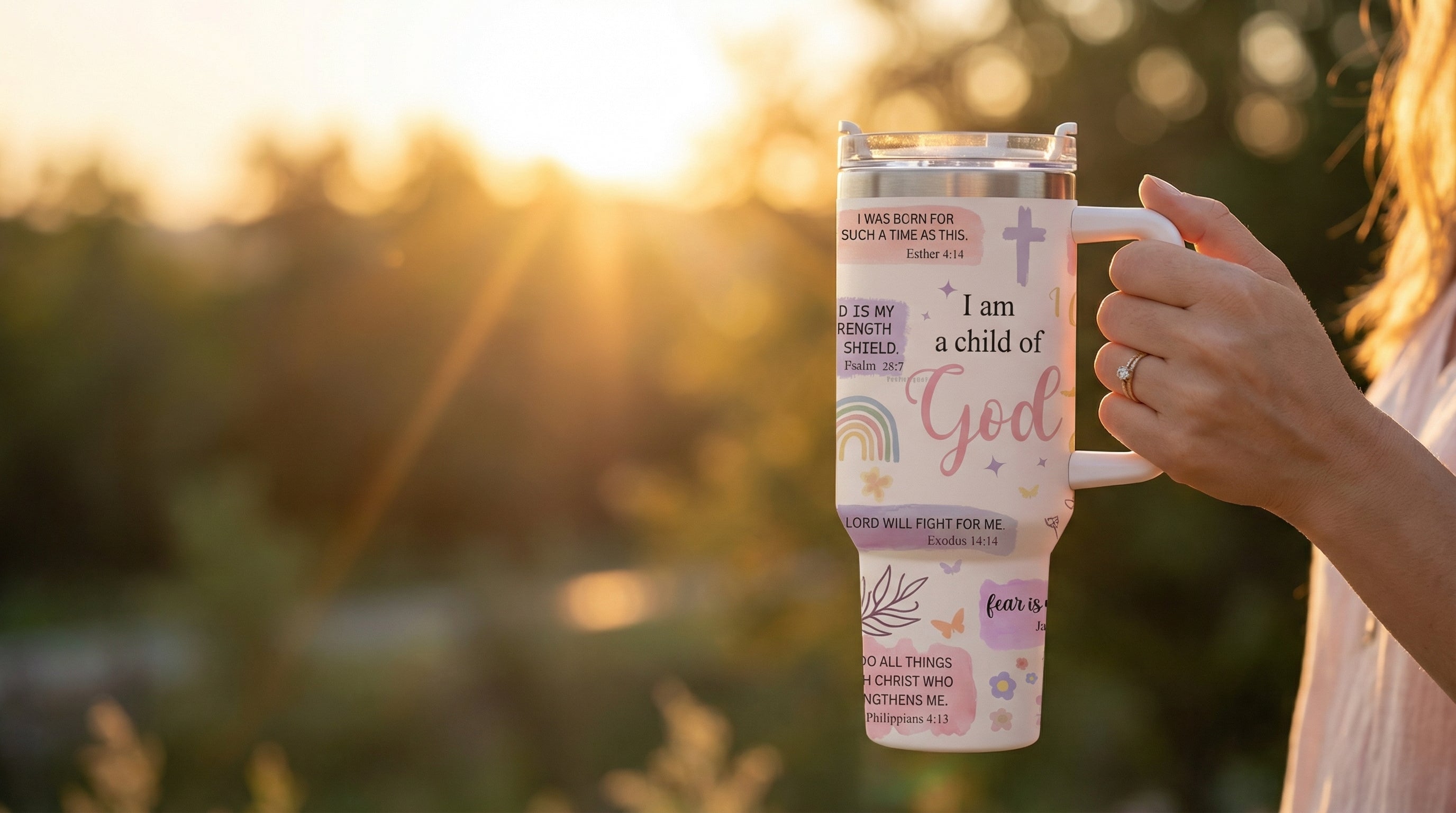 a beautiful tumbler filled with truth, peace, and everyday encouragement